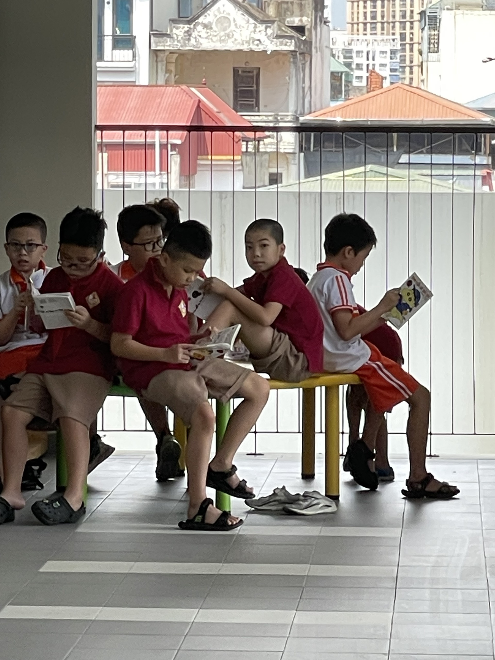 ngay khi vừa đến trường, trong giờ ra chơi, giờ tan học. Nhà trường còn bố trí